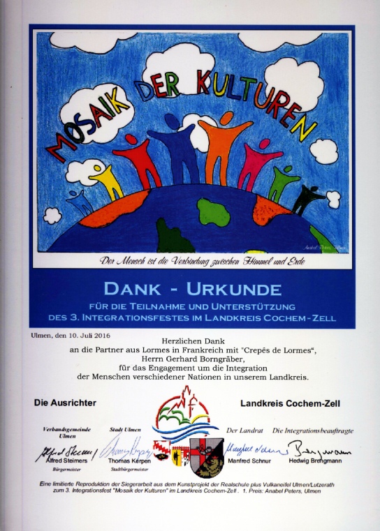 Auch der Landkreis Cochem-Zell bedankt sich bei allen Helfern für Ihren Einsatz mit einer Dank- Urkunde.